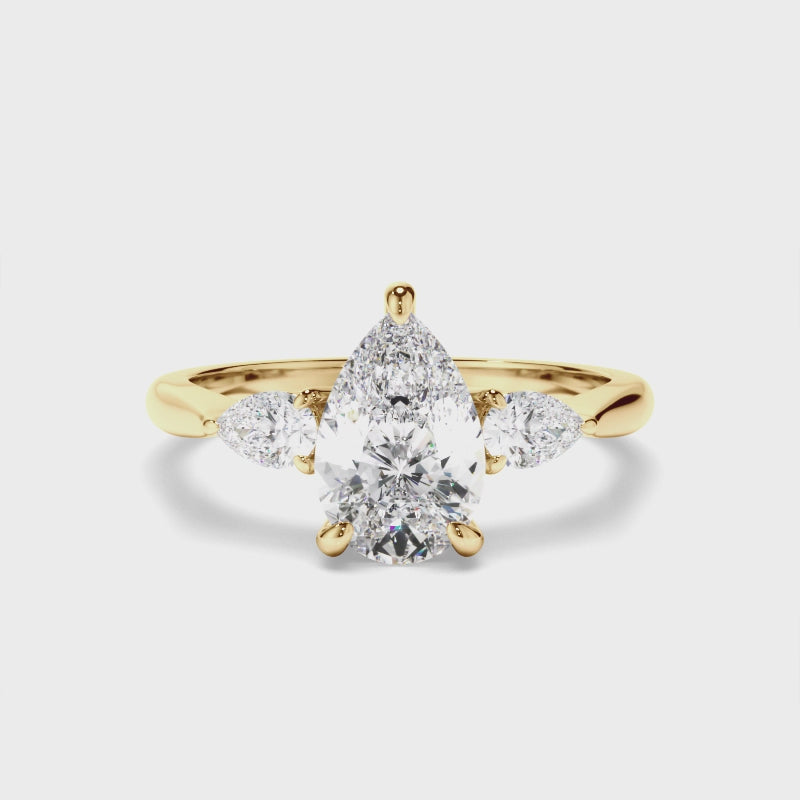Pear Cut Diamond Trilogy Engagement Ring with Pear Sides