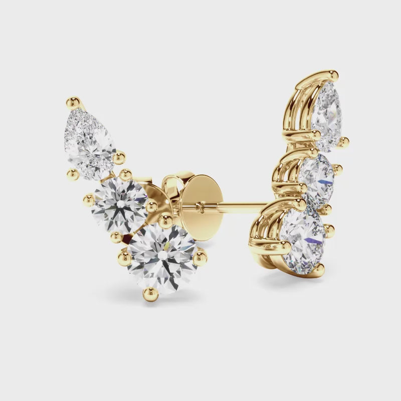 Round Brilliant & Pear Cut 3-Stone Stud Earrings