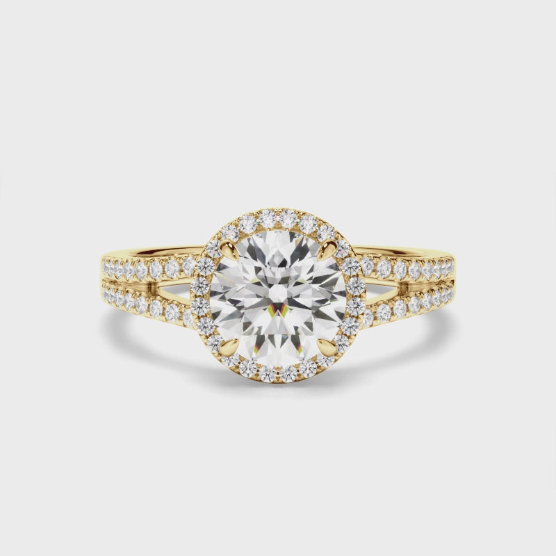 Round Brilliant Cut Diamond Halo Engagement Ring with Pave Sides